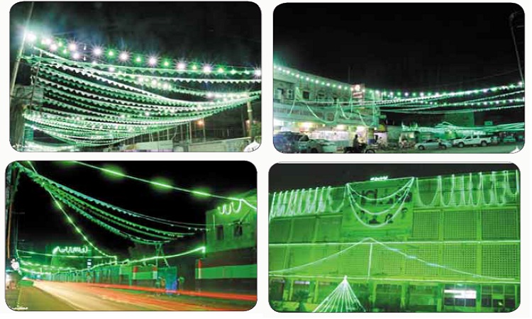 في ظل هذه الأجواء الروحانية تحولت مدينة الحديدة وكل مناطق المحافظة إلى ورشة عمل وقد اكتست شوارعها ومعالمها وقلاعها التاريخية باللون الأخضر وتزينت بالأضواء والرايات الخضراء استعدادا لاحتضان الاحتفال الجماهيري الكبير بمولد سيد الخلق أجمعين.