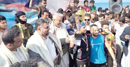 عقب ذلك قام وزير الشباب والرياضة محمد المؤيدي ومعه محافظ الحديدة اللواء محمد عياش قحيم ووكيل قطاع الرياضة في الوزارة علي هضبان والوكيل المساعد كمال الشريف والمدير التنفيذي للصندوق عبد الحميد المغربي ومدير عام النشاط الرياضي في الوزارة عصام دريبان ومدير إدارة النشاط الرياضي بالصندوق حمزة صالح ومدير عام الاتحادات والأندية وائل القرشي ورئيس اتحاد الفروسية صدام آل راشد ، بتكريم أبطال الكرة الشاطئية والسباحة بالكؤوس والميداليات الملونة والمبالغ المالية.