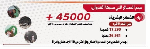 فشلت الحرب على اليمن في إحداث تغيير يذكر على صعيد الأهداف التي أعلنها تحالف عاصفة الحرب، الذي يتراجع ميدانيا أمام تقدمات الجيش واللجان الشعبية، لكن الحرب الأمريكية سجلت عشرات آلاف الشهداء والجرحى، وانتشارا للأوبئة وموتا بالآلاف لذوي الأمراض المستعصية.