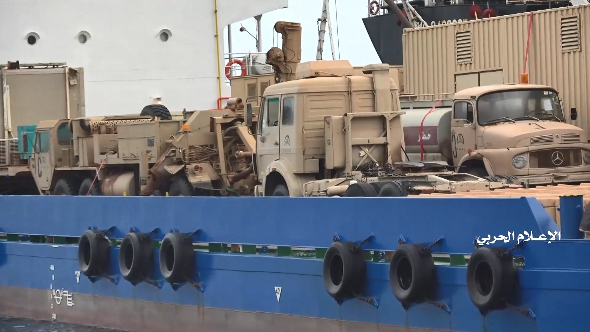 في الإيجاز الصحفي، عرض العميد يحيى سريع صوراً كشفت ما تحمله سفينة الشحن العسكرية الإماراتية من معدات عسكرية وآليات وزوارق وأسلحة.. داحضاً بذلك ادعاءات قوى العدوان من أنها كانت عبارة عن مستشفى متنقلة.