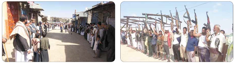 وأكد المشاركون في الوقفات استمرار التحشيد ورفد الجبهات لتعزيز الانتصارات التي يحققها أبطال الجيش واللجان الشعبية في مخaتلف الجبهات.