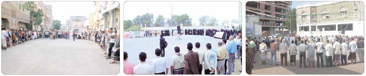 وفي المربع الشرقي نظم أبناء مديرية المراوعة بحضور مدير المديرية عبدالله المروني وقفة قبلية ومسيرة طلابية حاشدة نددت باستمرار العدوان والحصار ومنع دخول المشتقات النفطية .