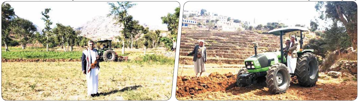 – في جانب الاستصلاح والشق للأراضي والطرق الزراعية، ما يقارب 40 الف متر مربع تقريباً، لذلك وحدة الحراثة تعمل وفق آلية منتظمة ودقيقة، كما تمارس وحدة الحراثة عملها وفق الآلية الموحدة المعتمدة في كل المحافظات، من خلال إيجاد منسقي وحدة الحراثة في كل مديرية، وعلى مستوى العزل، وحصر المزارعين والأراضي الزراعية والرفع باحتياج كل مزارع وفق نماذج معدة لذلك، ونقوم برفع هذه الطلبات إلى وحدة الحراثة بصنعاء لدراستها، وتوفير مايمكن توفيره من مادة الديزل، وكذلك معدات للحراثات أو معدات أخرى، وتقوم الوحدة بتوفير مادة الديزل إلى أقرب محطة للعمل، لذلك فقد حققت وحدة الحراثة في مجال الشق والاستصلاح الزراعي، من خلال معدات المجتمع عدد (3757 ساعة) عمل في استصلاح أراضي زراعية وشق وتأهيل حواجز مائية وطرق زراعية، وذلك من خلال التعاقد مع ملاك المعدات (بكلين – شيول – تركتر)، إضافة إلى توفير مادة الديزل بالسعر الرسمي، حيث تم تخفيض أجور ساعات العمل بنسبة تصل إلى 40 %، ويقدر إنجاز العمل في الحواجز المائية بـ(18623 متراً مكعباً).