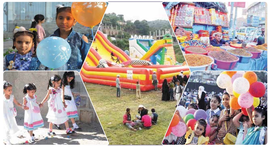 للعيد في نفوس اليمنيين فرحة وسعادة غامرة تفوق صلف الحصار والعدوان وبالرغم من الظروف الاقتصادية المتردية إلا أن اليمني أثبت للعالم أن ثباته وصموده هو سر هذه الفرحة العيدية المستبشرة بفرحة الانتصار والتمكين.
