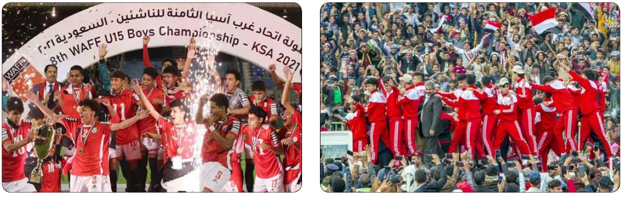 ومؤخراً حقق المنتخب الوطني للناشئين إنجازاً غير مسبوق حينما حصد بطولة اتحاد غرب آسيا الثامنة لكرة القدم ، إثر تغلبه على المنتخب السعودي في المباراة النهائية بالدمام ، والذي أسعد الجماهير اليمنية التي خرجت عن بكرة أبيها في جميع المحافظات اليمنية شرقاً وغرباً شمالا وجنوباً في مسيرات فرائحية ابتهاجا بهذا العرس الكروي الذي تحقق للمرة الأولى في تاريخ الكرة اليمنية.