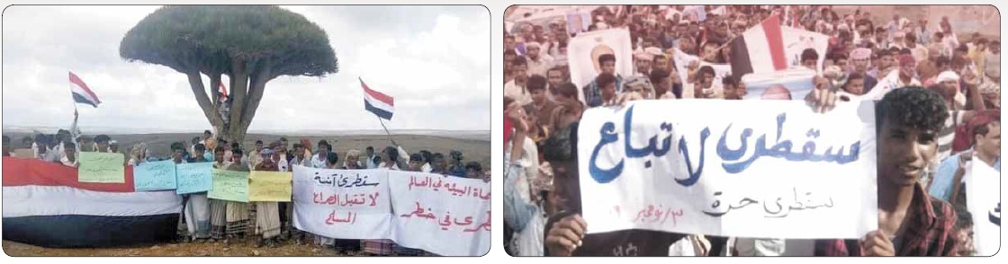 كما أصدر الاحتلال الإماراتي توجيهات للسفن في موانئ عدن والمكلا والغيضة، بعدم نقل اليمنيين إلى الجزيرة، وفي مقدمتهم أبناء الشمال والجنوب، وبدأت تضع قيوداً عديدة على اليمنيين. ومنع السياحة لليمنيين، في الوقت نفسه الذي بدأ يزداد عدد الإماراتيين في الجزيرة، وكذلك الطائرات والسفن القادمة من الإمارات، ضمن رحلات يومية، تارة تنقل جنوداً ورجال مخابرات وتارة مليشيات.