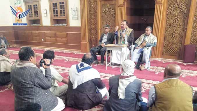 ناقش لقاءان بمديريتي التحرير والثورة – برئاسة أمين العاصمة حمود عباد ووكيل أول الأمانة خالد المداني، أمس – سير تنفيذ موجهات قائد الثورة السيد عبد الملك بدر الدين الحوثي خلال لقائه بوجاهات وأبناء أمانة العاصمة.