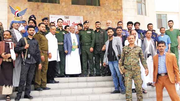 رافقهم قائد محور إب العميد قاسم العياني و مدراء مكاتب الإعلام عبدالباسط النوعة والشؤون الإجتماعية نبيل المرتضى ومدير فرع هيئة الأوقاف بندر العسل ونائب قائد المحور العقيد ماجد العياني .