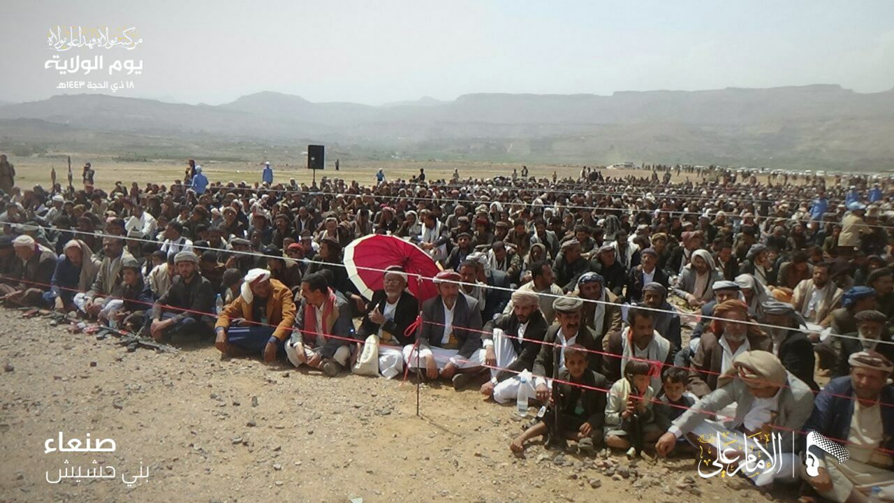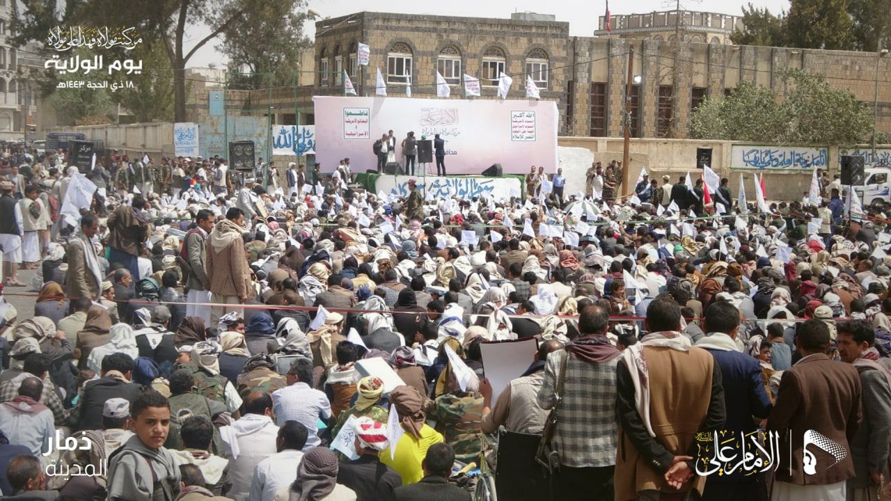 أحيت العاصمة صنعاء وعموم المحافظات، اليوم الاثنين، الـ18 من ذي الحجة، في عشرات الساحات يوم ولاية أمير المؤمنين علي بن أبي طالب عليه السلام.