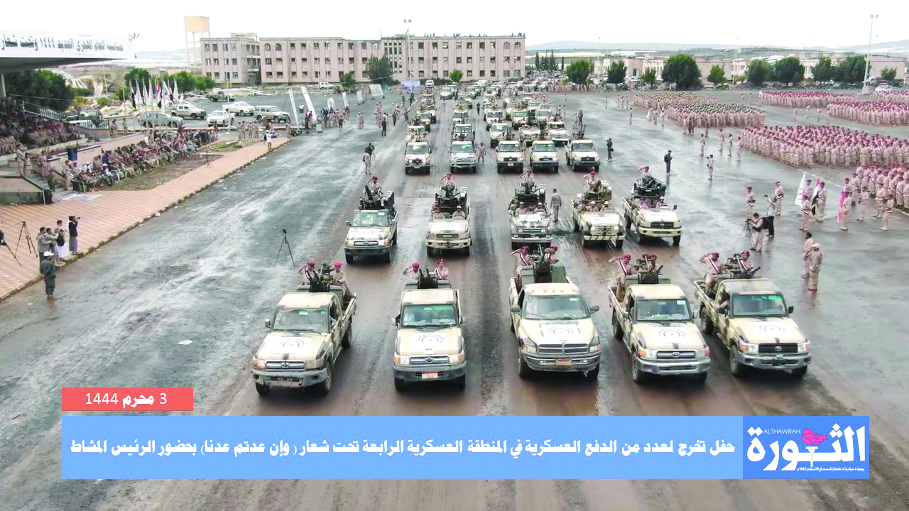 بمناسبة العام الهجري الجديد 1444 هجرية، أقامت القوات المسلحة “المنطقة العسكرية الرابعة” عرضا عسكريا لتخريج دفعة “وَإِنْ عُدْتُمْ عُدْنَا” ، حيث عرضت قدرات عسكرية متطورة محلية الصنع ، من الطائرات المسيرة والمدفعية وسلاح الزلزال 2 المحلي، والكاتيوشا ، والقناصة، وضد الدروع، والكورنيد، ووحدة الدفاع الجوي، والمدرعات.