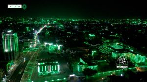 وتتزين سماء المدن في بلادنا وشوارعها وطرقاتها وأحيائها ومبانيها وسمائها بألوان خضراء وأضواء مبهجة، وتزينت العاصمة صنعاء وشوارعها الرئيسية بالأضواء وألوانها الزاهية.