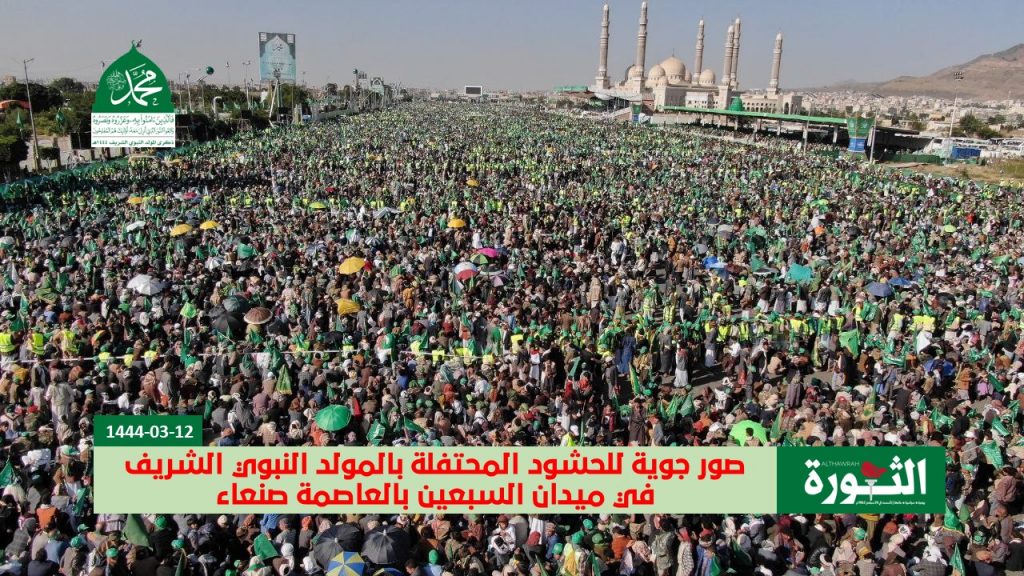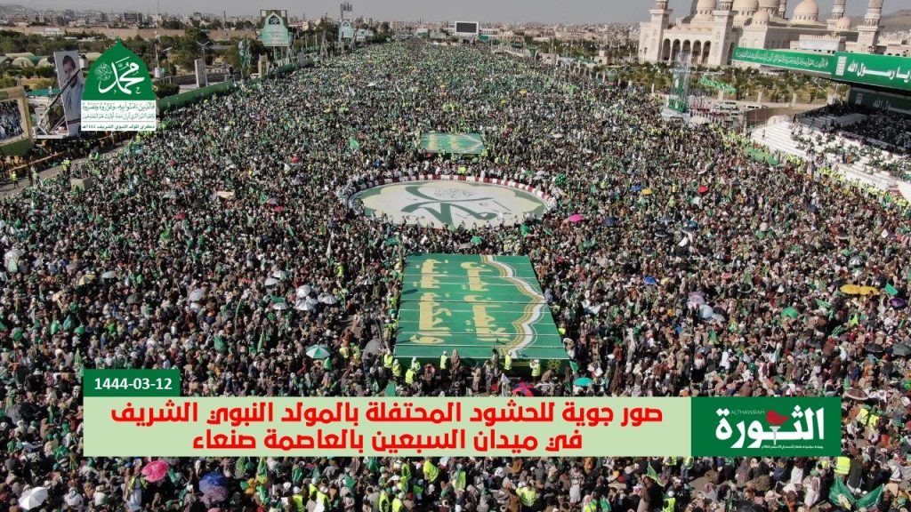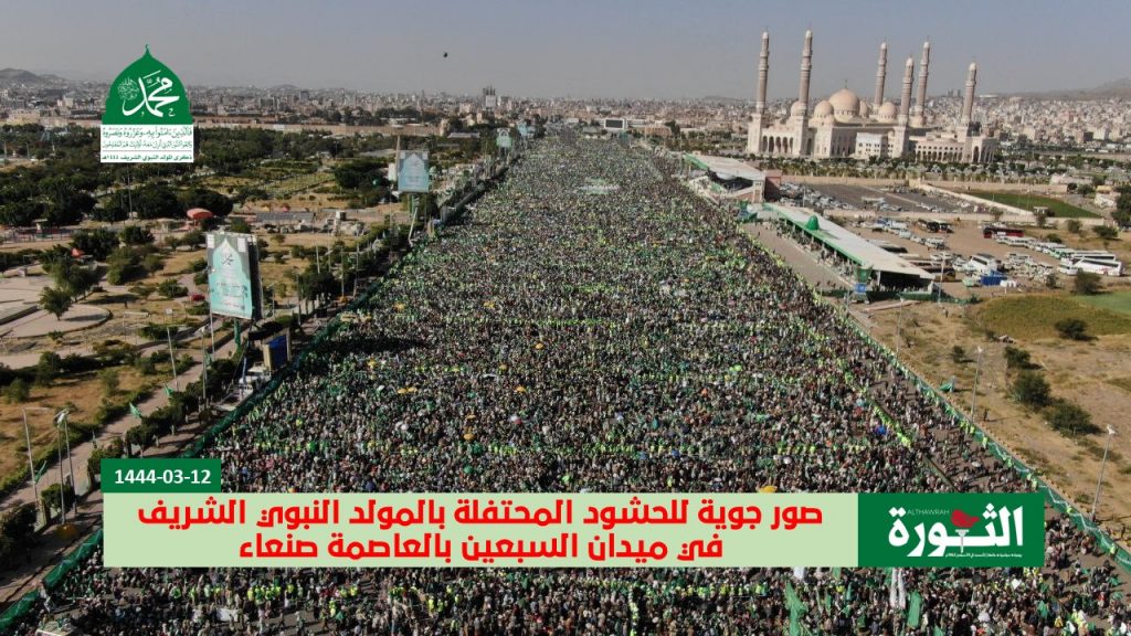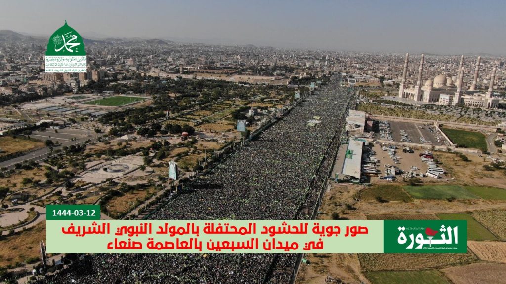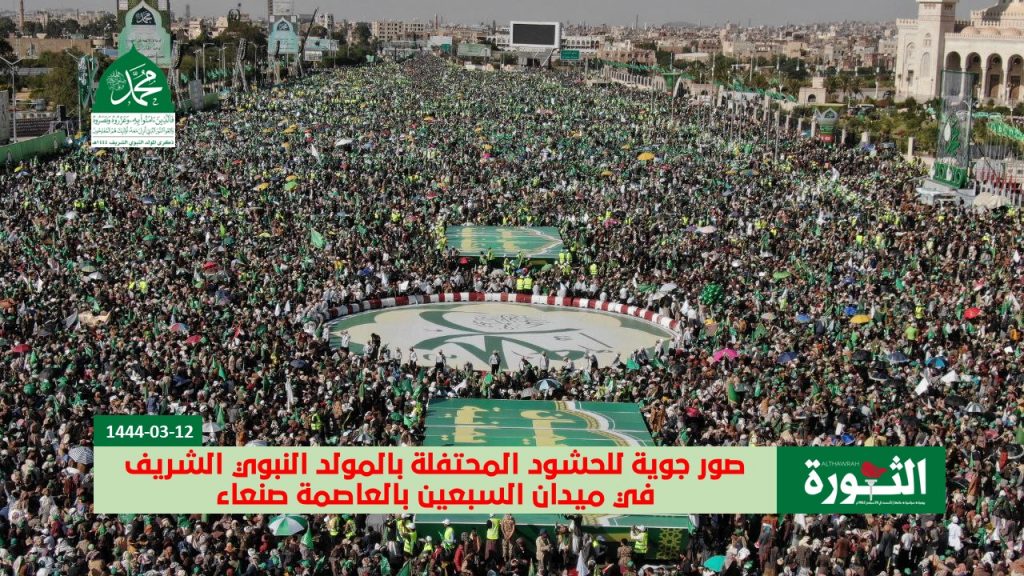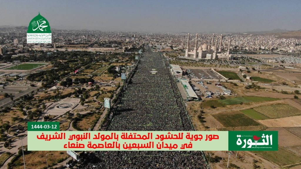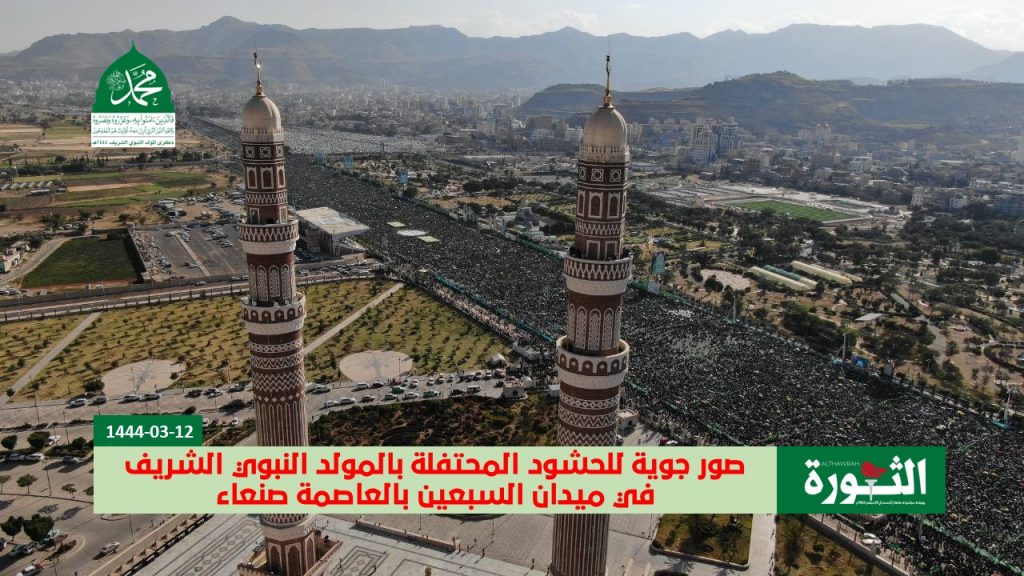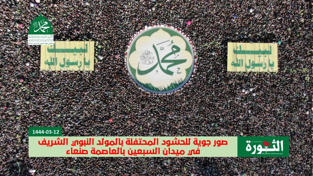 صور جوية للحشود المحتفلة بـ #المولد_النبوي_الشريف في ميدان السبعين بالعاصمة صنعاء السلايدر On أكتوبر 8, 2022 Share صور جوية للحشود المحتفلة بـ #المولد_النبوي_الشريف في ميدان السبعين بالعاصمة صنعاء Share FacebookTwitterWhatsAppTelegramGoogle+البريد الإلكترونيPrint