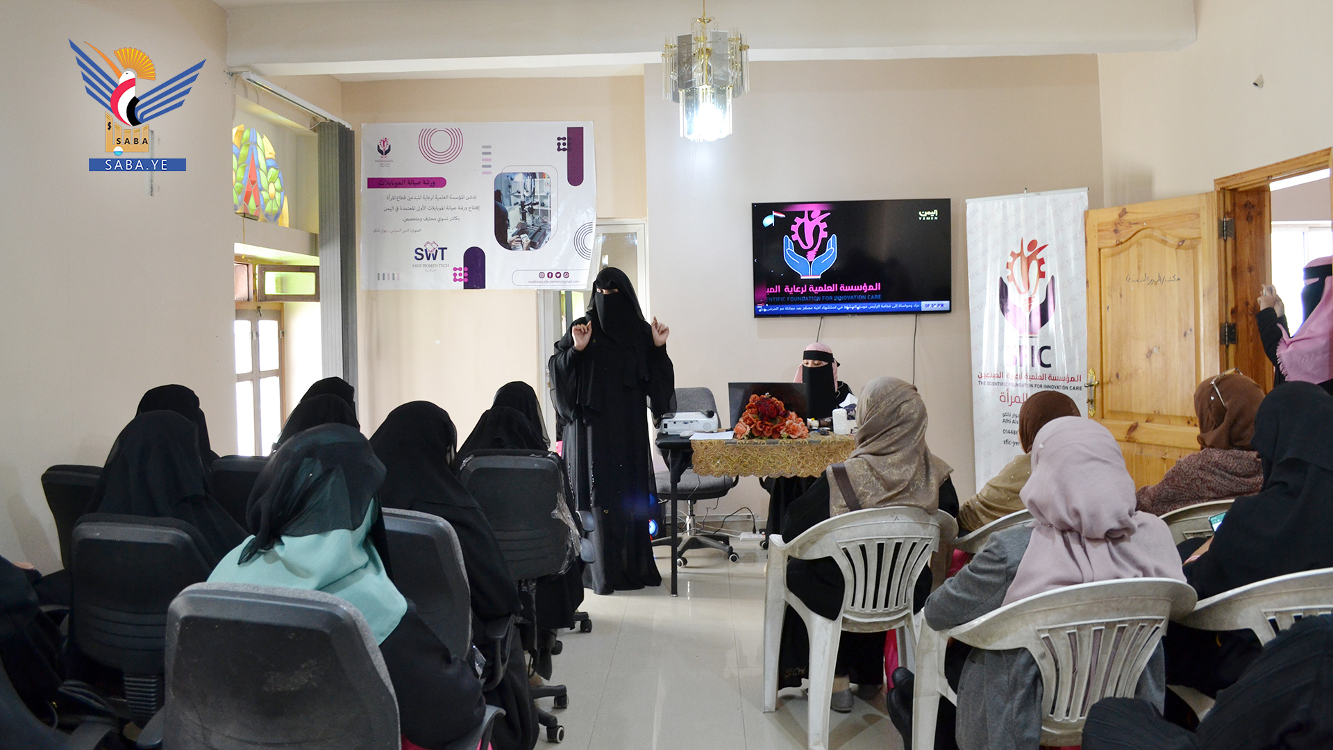 افتتحت عضوا مجلس الشورى حسيبة شنيف، ونور باعباد مؤخراً في صنعاء ورشة نسائية لصيانة الموبايلات، أنشأها قطاع المرأة في المؤسسة العلمية لرعاية المبدعين.