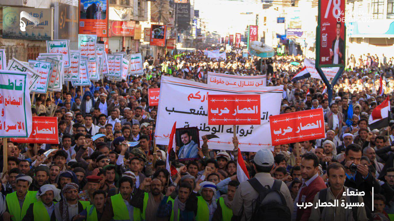 في يوم يماني مشهود خرج الشعب اليمني في مسيرات مليونية تحت عنوان ” الحصار حرب” في مختلف المحافظات اليمنية الحرة لتفويض القيادة الثورية والسياسية باتخاذ القرارات المناسبة التي تنهي حالة “اللا حرب واللا سلم” التي يريدها العدوان، وإجبار العدو على إنهاء حصاره على المطارات والموانئ ودفع رواتب الموظفين، من ثروات الشعب التي تنهب وتذهب لبنوك السعودية والإمارات وجيوب السرق والنافذين في حكومة المرتزقة المدعومة من قبل الرباعية الدولية وعلى رأسها أمريكا وبريطانيا .