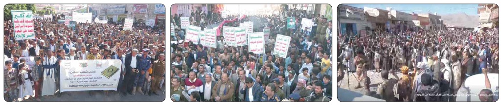 كما شهدت مديرية الجوبة بمحافظة مارب، أمس، مسيرة جماهيرية حاشدة تحت شعار “غضب شعب الإيمان ضد من أحرقوا القرآن”.