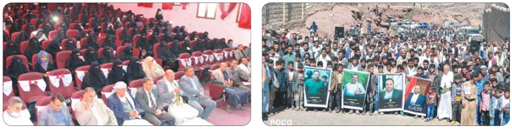 من جهة أخرى خرج أبناء مديريات رداع السبع في محافظة البيضاء أمس، في مسيرة جماهيرية حاشدة وفاءً للرئيس الشهيد صالح الصماد، وتضامناً مع الشعب الفلسطيني، وتحذيرا لتحالف العدوان.