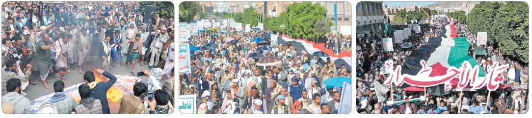 المحتشدون يجددون الموقف الثابت للشعب اليمني الداعم للفلسطينيين ومناصرته ومساندته للمقاومة في ردع غطرسة العدو الصهيوني