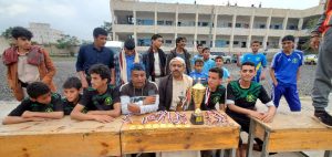 وفي البطولة اقيمت تحت شعار “الوحدة قوة وصمود” وباشراف ورعاية اللجنة العليا للانشطة والدورات الصيفية واللجنة الفرعية للدورات الصيفية بمحافظة صنعاء..توج فريق مدرسة الشهيد القائد بكاس البطولة وحصولة علي المركز الاول اثر فوزة علي نظيرة فريق مدرسة شهيد القران بجحانه ب 22 نقطة مقابل 13 نقطة وتاهلة خلال الشوطين، كما حصل فريق مدرسة الامام علي بمناخة علي كاس الفريق المثالي.