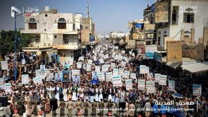 حيث شهدت العاصمة صنعاء، عصر اليوم، مسيرة جماهيرية كبرى إحياءً لذكرى استشهاد الإمام الحسين عليه السلام “عاشوراء” وتنديداً بالإساءة للقرآن الكريم تحت شعار “هيهات منا الذلة”.