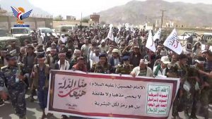 وفي محافظة مأرب شهدت ساحات المحافظة مسيرات جماهيرية حاشدة وفعاليات خطابية لأبناء المديريات الشمالية والغربية والمديريات الجنوبية بالمحافظة، بذكرى عاشوراء، تحت شعار “هيهات منا الذلة”.