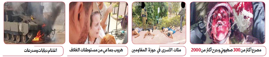 اقتحام بري وبحري وجوي للمستوطنات الصهيونية في «غلاف غزة»، تزامن مع إطلاق أكثر من 10 ألاف صاروخ نحو الأراضي المحتلة ، عجز لـ«القبة الحديدية»، والحصيلة مرعبة من القتلى والجرحى والخسائر في صفوف العدو الصهيوني.