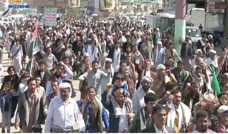 حيث شهدت مديرية دمت أمس مسيرة جماهيرية حاشدة دعما للشعب والمقاومة الفلسطينية والتنديد بجرائم العدو الصهيوني في غزة والأراضي المحتلة.