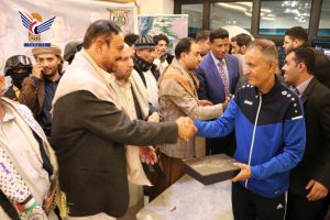 إلى ذلك، كرَّم أمين العاصمة ومعه أمين عام المجلس المحلي، ورئيس لجنة الشؤون الاجتماعية في محلي أمانة العاصمة، حمود النقيب، ووكيلا أمانة العاصمة، ناجي القوسي، وعبدالفتاح الشرفي، ووكيل قطاع الرياضة في وزارة الشباب، علي هضبان، أعضاء بعثة المنتخب بدروع وشهادات تكريمية.