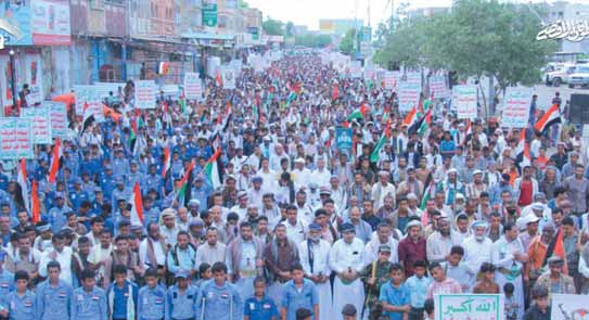 الحديدة.. مسيرات كبرى في 23 ساحة بمديريات المحافظة تضامنا مع الشعب الفلسطيني