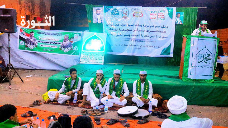 أفراح العرس المحمدي في الساحل التهامي يتميز بصور ومظاهر مشرقة من خلال اناشيد المديح التهامي البديع والمهرجانات الليلية التي تفيض بعناوين الحب والاعتزاز بنبي الرحمة بحضور جماهيري كبير في مختلف المديريات.