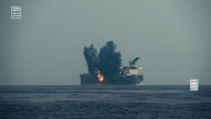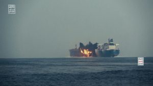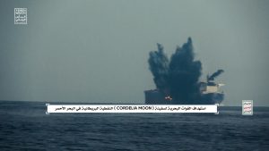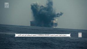وزع الإعلام الحربي مساء اليوم مشاهد لعملية استهداف القوات البحرية في القوات المسلحة اليمنية بزروق مسير سفينة “CORDELIA MOON” النفطية البريطانية في البحر الأحمر.