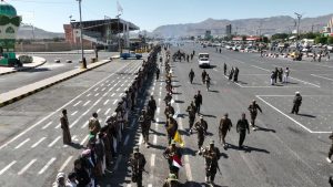 ويأتي المسير العسكري الذي وصل إلى ميدان السبعين بالعاصمة صنعاء، في إطار استمرار الحفاظ على الجاهزية وبقاء حالة النفير العام، والجهوزية الكاملة لأي خيارات تتخذها القيادة للتصدي لقوى الاستكبار العالمي بقيادة أمريكا وبريطانيا والكيان الصهيوني.