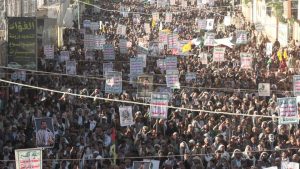 وردد المشاركون في المسيرات التي تقدمها أعضاء من مجلسي النواب والشورى وقيادات أكاديمية، وقضائية، وتنفيذية، ومحلية، وتعبوية، وأمنية، وعسكرية، شعارات التضامن مع فلسطين ولبنان، والتنديد بجرائم وغطرسة الكيان الصهيوني واستمرار الصمت المخزي لحكام العرب و المطبعين مع العدو.