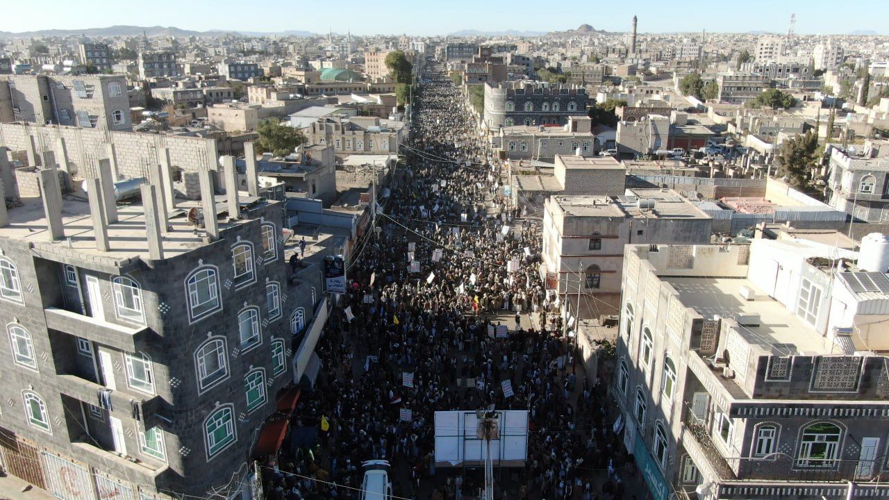 وندد المشاركون في المسيرات التي تقدمها أعضاء من مجلسي النواب والشورى، وقيادات أكاديمية، وقضائية، وتنفيذية، ومحلية، وتعبوية، وأمنية، وعسكرية، بالجرائم البشعة بحق الشعب الفلسطيني على مدى 427 يوما من الابادة الجماعية من قبل العدو الصهيوني الأمريكي في ظل صمت عالمي وتخاذل عربي و إسلامي معيب.