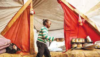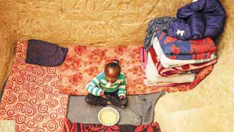 حفر رب الأسرة بعض الدرجات في الأرض للنزول إلى الملجأ، وأقام ما يشبه مدخنة يحرق فيها بعض الأوراق أو الكرتون على أمل تدفئة الجو قليلاً، بدون أن ينجح في ذلك حقاً.. أمام الموقد، يفرك الأطفال أيديهم محاولين إيجاد بعض الدفء.