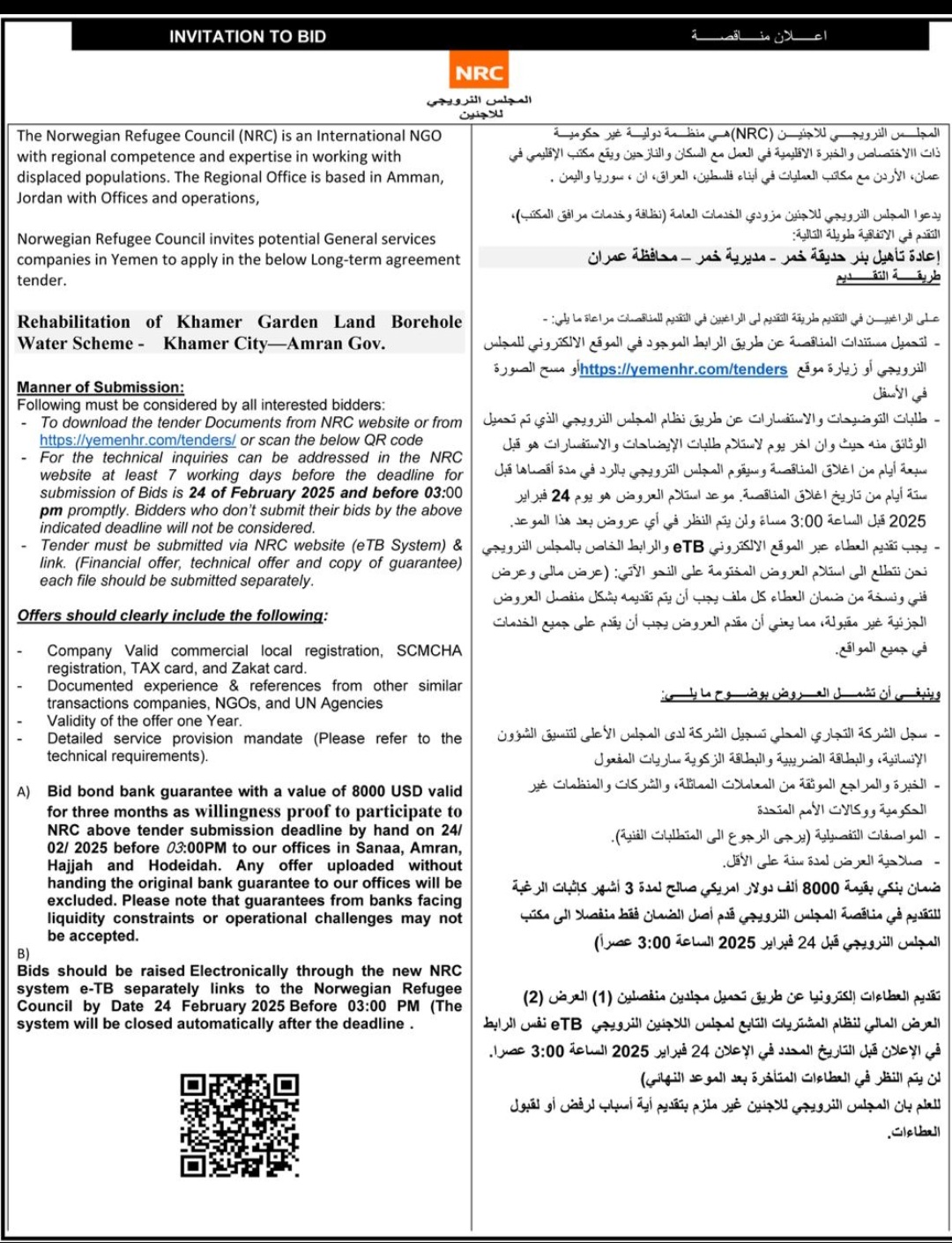 إعلان مناقصه للمجلس النرويجي للأجئين مناقصات On فبراير 15, 2025 Share Share FacebookTwitterWhatsAppTelegramGoogle+البريد الإلكترونيPrint