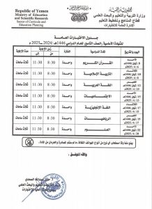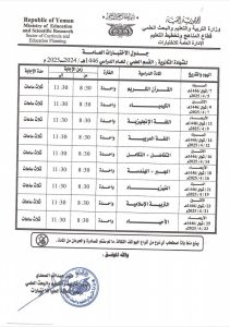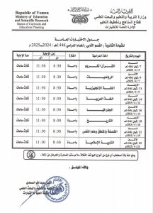 أعلنت وزارة التربية والتعليم والبحث العلمي، اليوم السبت ، جداول اختبارات الشهادة العامة الأساسية والثانوية بقسميها العلمي والأدبي للعام الدراسي 1446.