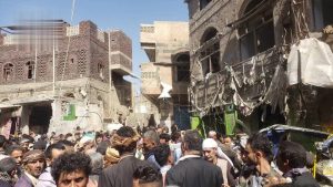 تفقد النائب الأول لرئيس الوزراء العلامة محمد مفتاح، ومعه وكيل أول أمانة العاصمة خالد المداني، موقع المجزرة التي ارتكبها العدوان الأمريكي في حي وسوق فروة بمديرية شعوب، وراح ضحيتها العشرات من المواطنين.