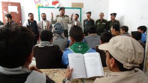 رافقه في الزيارة المستشارون العقيد حسين النونو والعقيد علي قائد والعقيد عبدالله حوري ومشرف المربع عبدالولي مطير ومتابع المربع من القوى البشرية الرائد يحيى الأهجري.