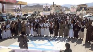 ونظم أبناء مديرية مجزر مسيرة حاشدة، أعلنوا خلالها التأييد المطلق للخيارات التي تتخذها قيادة الثورة لمواجهة العدو الأمريكي ونصرة الشعب الفلسطيني، مباركين العمليات النوعية للقوات المسلحة اليمنية في عمق الكيان الصهيوني.