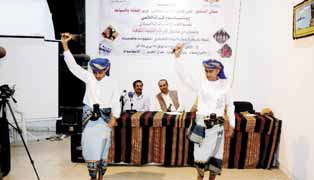 واستعرض مدير عام الفنون الشعبية في وزارة الثقافة علي المحمدي، تاريخ الفنون الشعبية والرقص الشعبي في اليمن وأنواعه وألوانه وإيقاعاته التي تختلف من منطقة إلى أخرى، وصاحب ذلك نماذج استعراضية للرقص الشعبي.