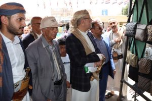 زار وزير الاقتصاد والصناعة والاستثمار المهندس معين هاشم المحاقري ، اليوم ، سوق الخميس للأسر المنتجة في ميدان التحرير بالعاصمة صنعاء .