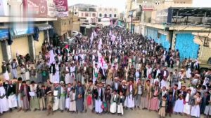 كما أكدت الجماهير الثبات على الموقف المحق والمشرف ليمن الإيمان والحكمة والجهاد في سبيل الله ومواصلة إسناد الشعب الفلسطيني.. مجددين العهد والولاء لله ولرسوله وأعلام الهدى والبراءة من أعداء الله.
