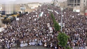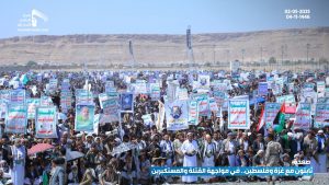 وأكد الحشود أن ما تحقق لليمن من انتصارات على قوى العدوان والاستكبار العالمي في إطار موقفه المناصر لغزة وفلسطين، هو نتيجة الثقة بالله والتوكل عليه.. مجددة تفويضها لقائد الثورة السيد عبدالملك بدر الدين الحوثي، ومباركة عمليات القوات المسلحة والتي أجبرت حاملة الطائرات الأمريكية على الفرار، وتواصل قصف عمق العدو الصهيوني وأهدافه الحيوية.