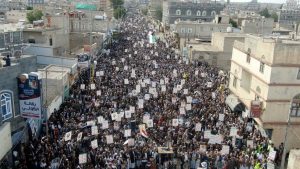 وندد المشاركون في المسيرات، بجرائم العدوان الأمريكي والبريطاني والصهيوني على اليمن وغزة.. مجددين العهد والولاء لله ولرسوله وأعلام الهدى والبراءة من أعداء الله أئمة الكفر “أمريكا وإسرائيل”.