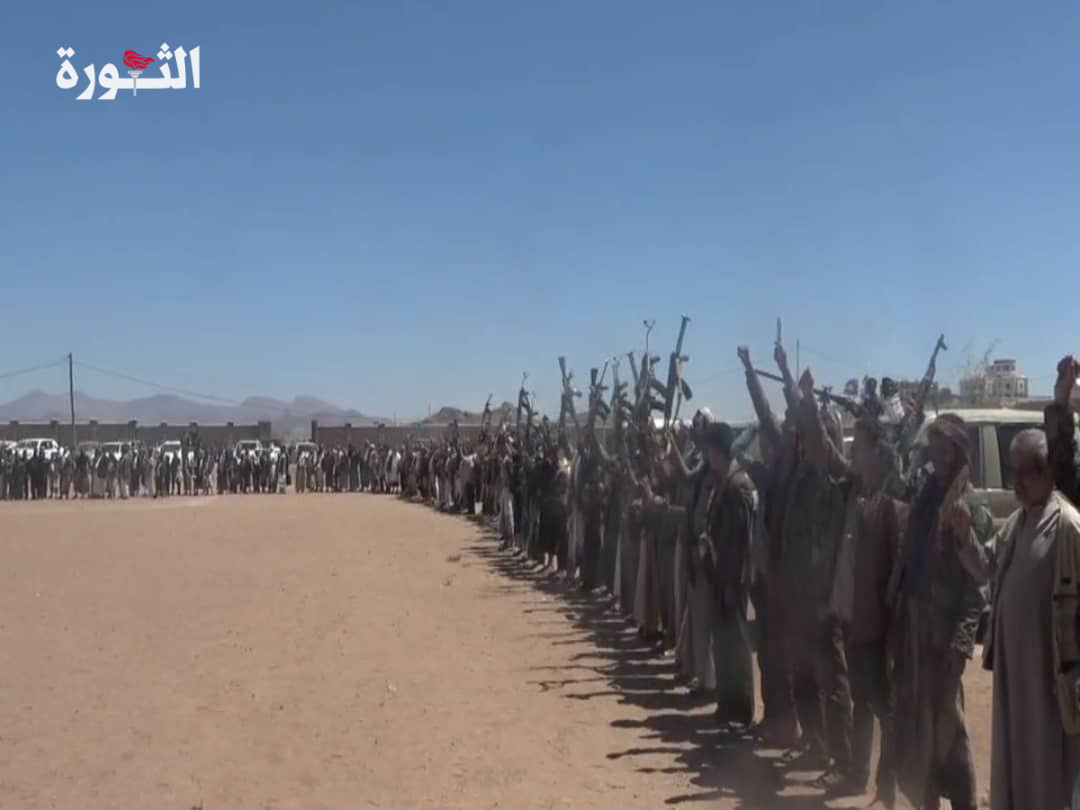 أعلن أبناء مديرية العرش بمحافظة البيضاء،اليوم في وقفة قبلية مسلحة النفير العام والجاهزية لمواجهة العدوان الأمريكي و استمرارا لمناصرة الشعب الفلسطيني في قطاع غزة.