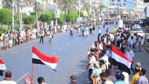عقب الوقفة، نظم المشاركون مسيرا راجلا جاب شارعي صنعاء والميناء بمربع المدينة، بمشاركة المحافظ عطيفي ووكيل أول المحافظة البشري ووكلاء المحافظة.
