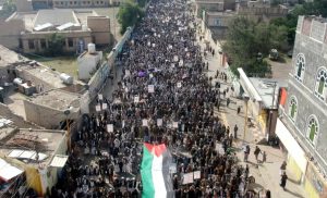 خرج أبناء الشعب اليمني اليوم في مسيرات مليونية بالعاصمة صنعاء ومختلف المحافظات تعبيرا عن الحمد والشكر لله سبحانه وتعالى على نعمة التأييد والنصر على العدو الأمريكي، وتأكيدا على مواصلة الجهاد نصرة للشعب الفلسطيني.