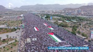 حمداً وشكراً لله سبحانه وتعالى على الفشل الأمريكي، وتحدياً للعدو الإسرائيلي، وثباتاً على الموقف الحق، ونصرة ومؤازرة للشعب الفلسطيني ومجاهديه الأعزاء، خرجنا اليوم في مسيراتنا المليونية… مؤكدين على الآتي: