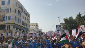 وجدد المتظاهرون دعوتهم لأبناء الشعب الفلسطيني في غزة لمواصلة الثبات والمقاومة، مؤكدين أن الشعب اليمني سيظل إلى جانبهم في مواجهة العدوان الصهيوني.