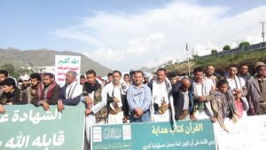 وأكد المشاركون في المسيرات، استمرارهم في التعبئة والوقفات والمسيرات دون كلل أو ملل، منوهًا بما حققته القوات المسلحة اليمنية، في معركة إسناد غزة، وإجبار الأمريكي على إيقاف عدوانه على بلادنا.